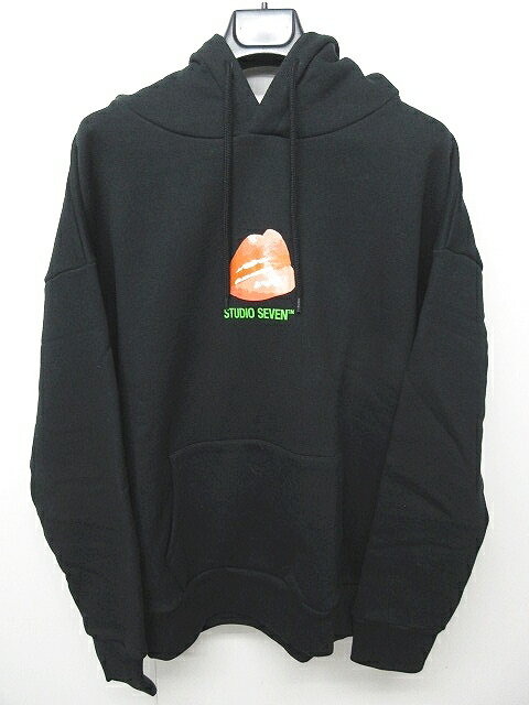 未使用品 スタジオセブン STUDIO SEVEN 18AW Lip Exclusive Hoodie Parka スウェット パーカー リップ プリント 黒 オレンジ L 70863953 1225 メンズ 【中古】【ベクトル 古着】 181225 ブランド古着ベクトルプレミアム店