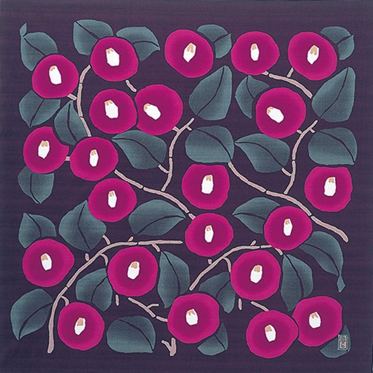 大正ロマンの竹久夢二の柄をモチーフに、 かわいいツバキ柄の風呂敷です。